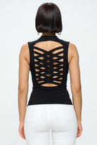 Top ajustado con un diseño moderno que destaca por su espalda cruzada y cierre frontal expuesto. Confeccionado en una tela suave y elástica que se adapta cómodamente al cuerpo, ofrece un estilo favorecedor y versátil ideal para outfits casuales o de noche. Su estructura mantiene un ajuste firme y definido sin perder comodidad.