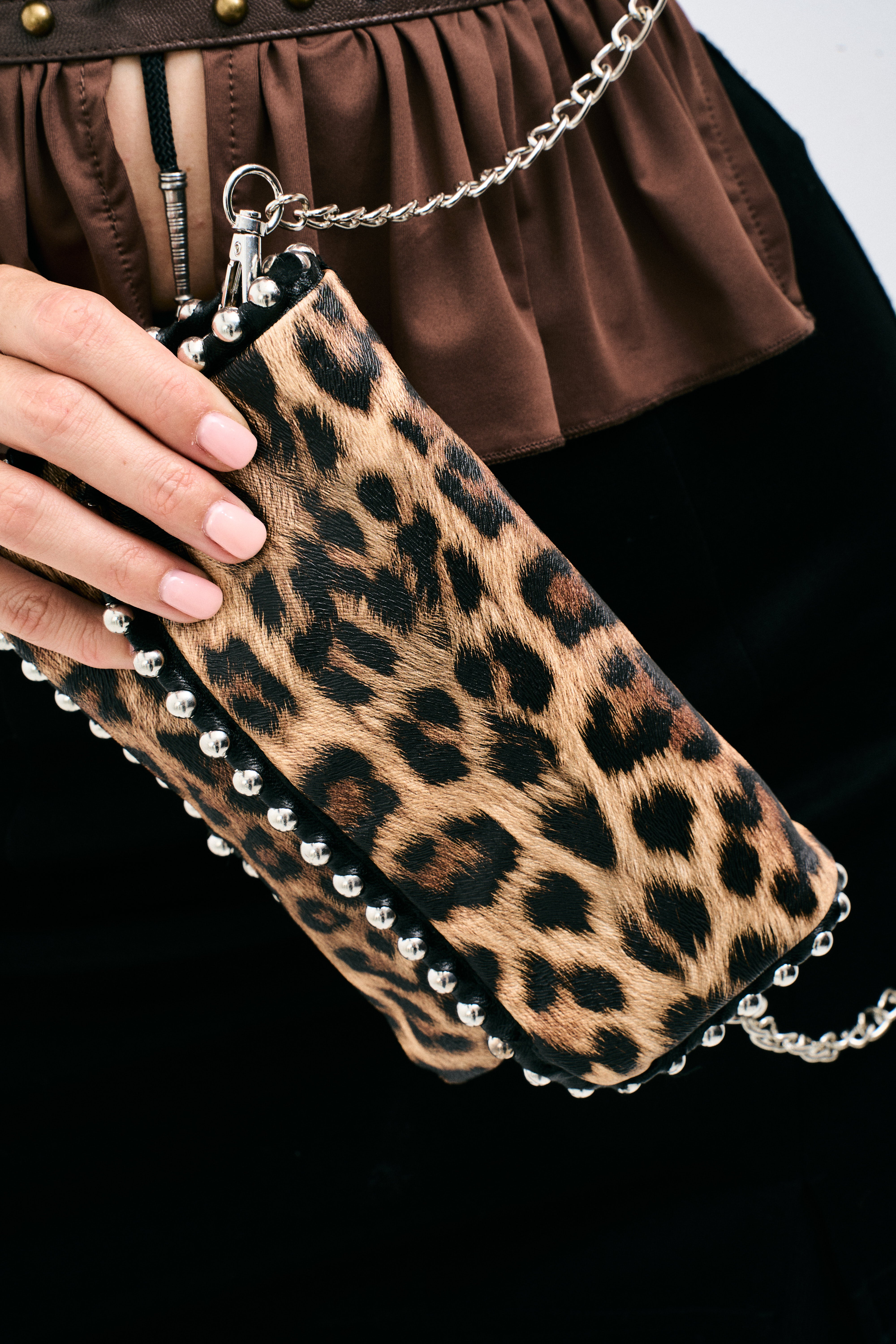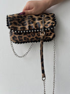• Bolso de hombro con estampado animal print y detalle de pedrería brillante en la solapa. Su diseño combina textura tipo pelo sintético con acabados metálicos, logrando un estilo moderno y sofisticado. Incluye cadena plateada para llevar al hombro o cruzado. Ideal para elevar cualquier look con un toque salvaje y glamuroso.