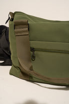 Bolso hobo de hombro en piel sintética con filas de piedras brillantes. Cuenta con dos bolsillos frontales con cremallera para mantener tus esenciales organizados, un bolsillo trasero con cierre, dos bolsillos internos abiertos y un bolsillo interno con cremallera. Herrajes en tono gunmetal y pies metálicos. Compatible con tablet de tamaño estándar (8-10 in).