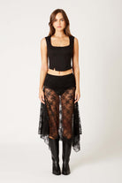 • Falda midi de encaje con diseño femenino y sofisticado que realza la silueta con su textura delicada y ajuste estilizado. Ideal para elevar cualquier look, desde combinaciones elegantes hasta propuestas más modernas en capas, aportando un toque romántico y atemporal al outfit.