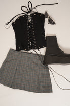 Enagua corta de franela con estampado a cuadros y pliegues marcados. Tiene un calce relajado que combina estilo clásico con comodidad.