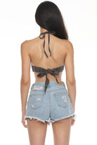 Top halter tipo crop con un diseño fresco y divertido, confeccionado en algodón grueso con franjas y un delicado bordado de fresa al frente. Su ajuste es cómodo y se anuda en la espalda, perfecto para días soleados o para combinar en capas con looks casuales y veraniegos.