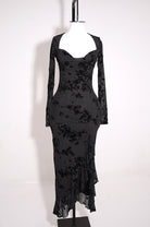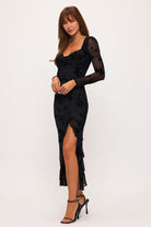 Refined Black Floral Slit Dress