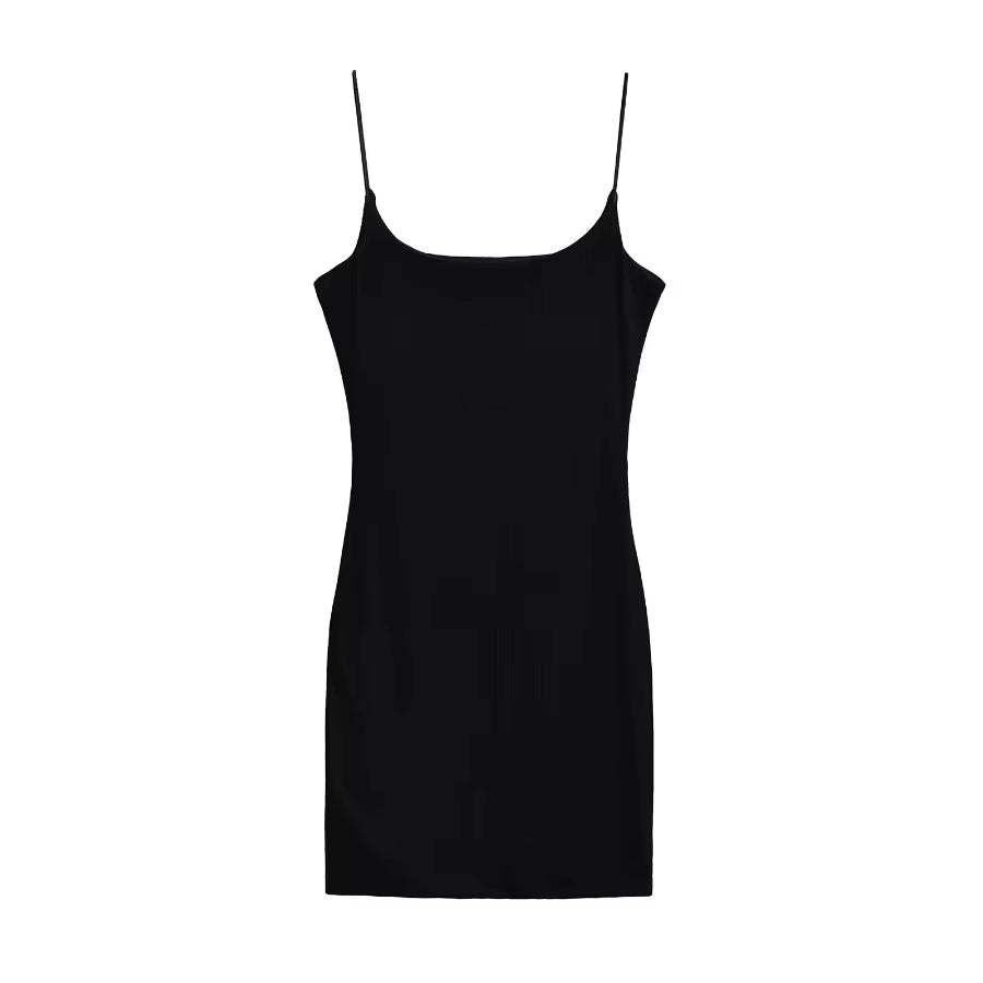 • Vestido mini de silueta bodycon confeccionado en modal micro rib de tacto suave y ligero, con escote cuadrado y tirantes finos que realzan la figura; su ajuste skinny con cintura marcada ofrece un look femenino y versátil, ideal para ocasiones casuales o de fiesta durante temporadas cálidas gracias a su tejido transpirable y cómodo.