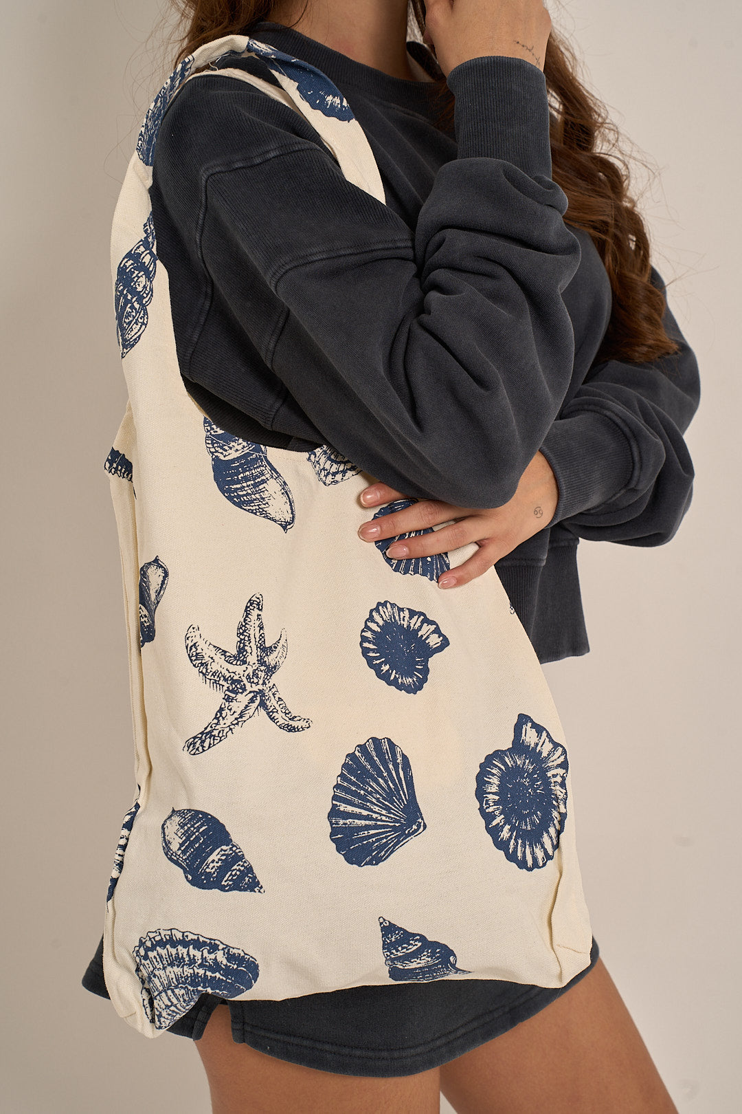 • Estampado costero de conchas y estrellas de mar. Su diseño de lona resistente lo hace perfecto para salidas a la playa, compras, paseos casuales o incluso para llevar cuadernos y esenciales del día a día.