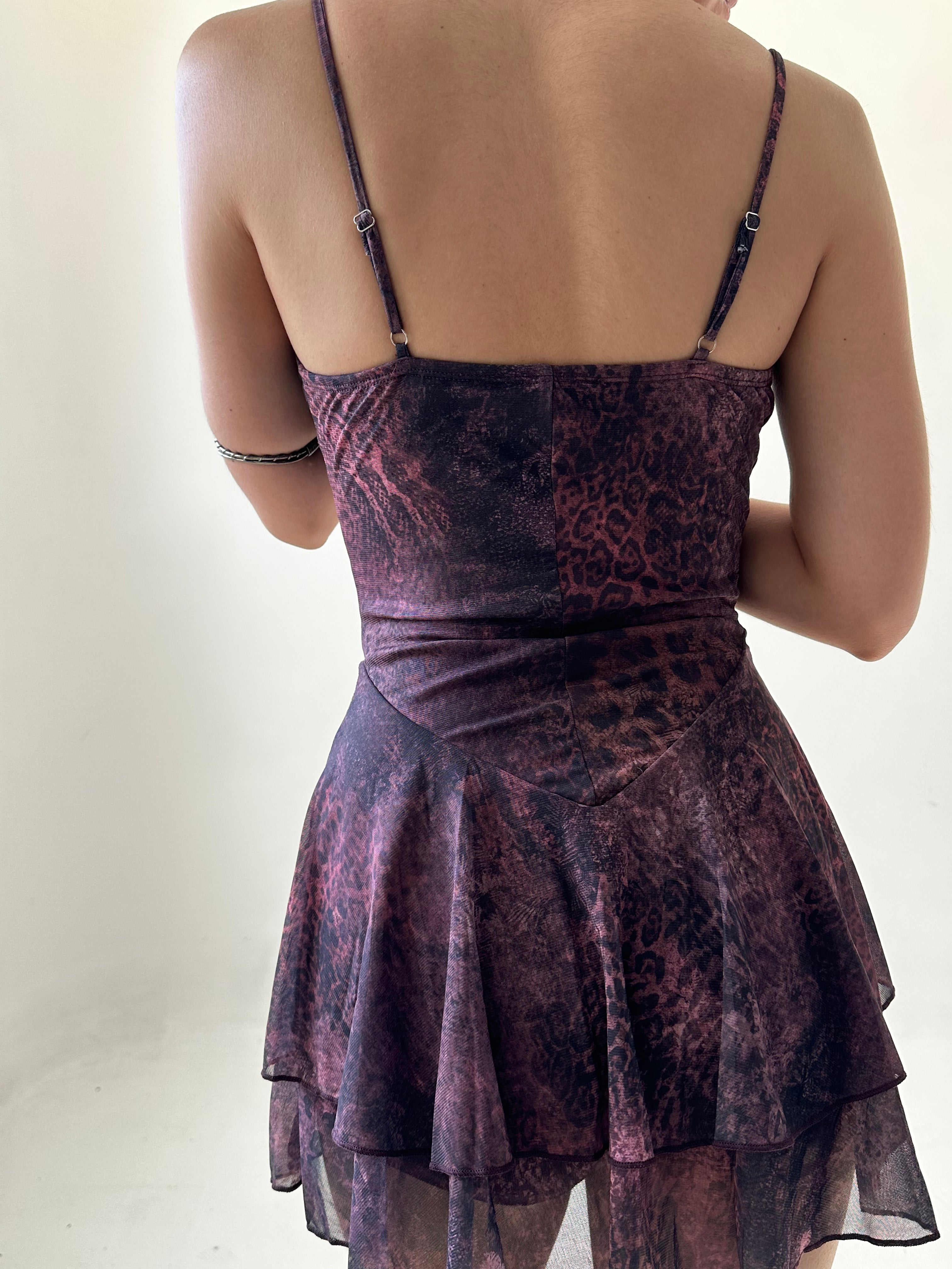 • Vestido con estampado animal print que aporta un look audaz y lleno de personalidad. Su silueta favorecedora y tejido elástico se adaptan cómodamente al cuerpo, ideal para crear outfits llamativos tanto de día como de noche.