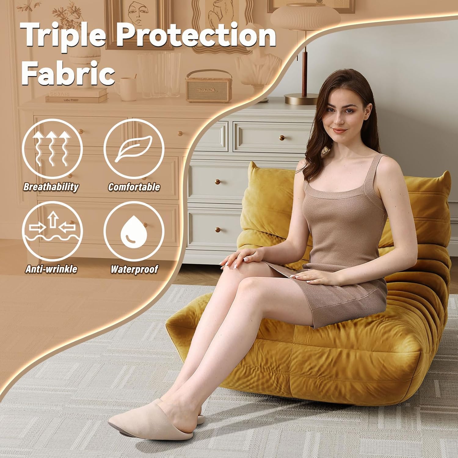 Sofá tipo puff – Tamaño adulto con tela impermeable suave, ideal para sala, apartamentos, rincón de lectura, videojuegos o cine en casa (Color: Amarillo).