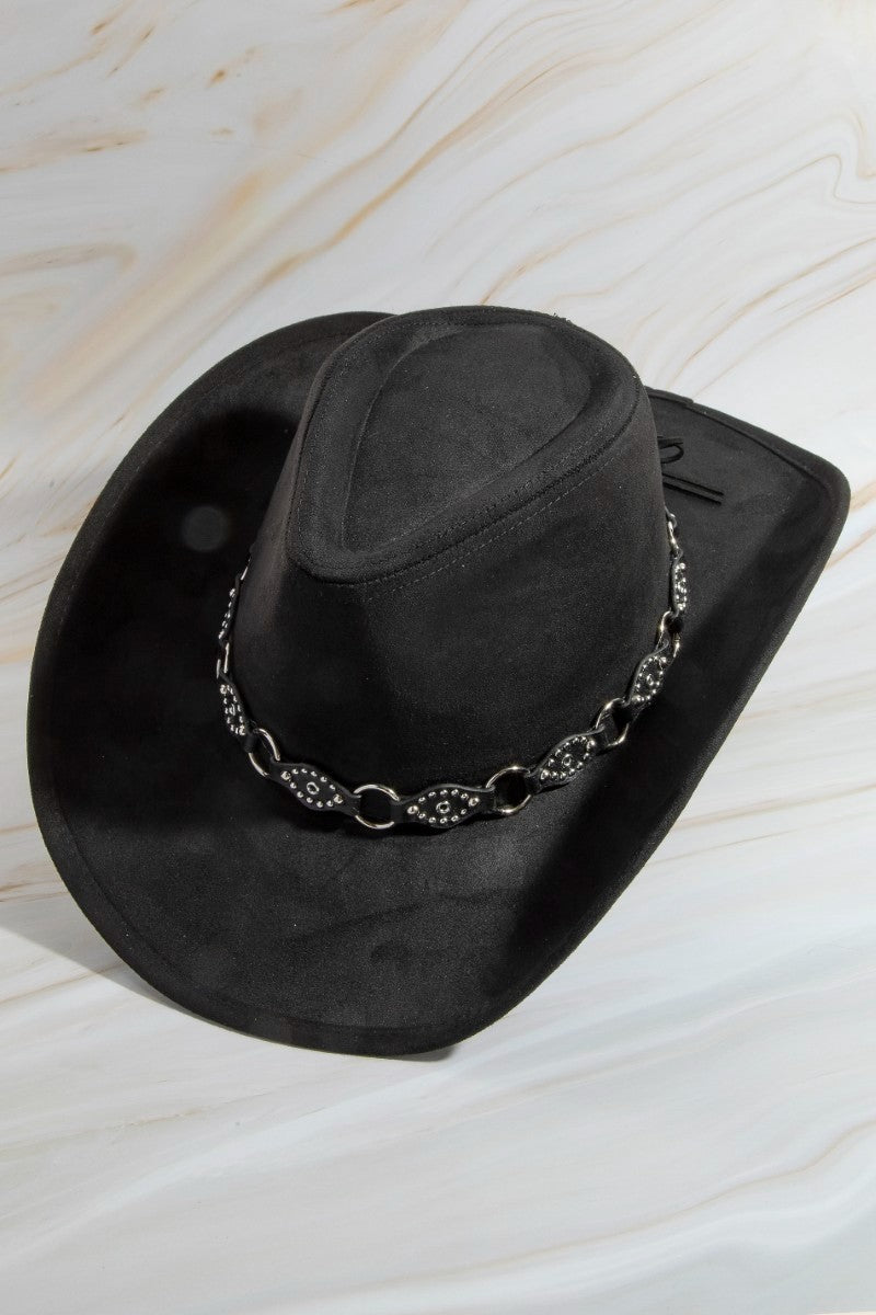 Sombrero estilo vaquero en color negro, con ala ancha y copa estructurada. Perfecto para complementar looks western, casuales o de festival, ofreciendo un toque audaz y elegante. Material ligero y cómodo para usar todo el día.