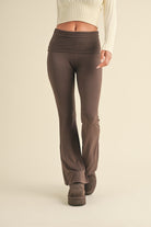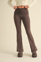 Estos pantalones flare de tejido knit suave destacan por su diseño cómodo y favorecedor. La pretina foldover estiliza la cintura y permite un ajuste versátil, mientras que la silueta acampanada alarga visualmente las piernas. Su confección en material elástico ofrece libertad de movimiento y una sensación agradable al contacto con la piel, convirtiéndolos en una opción ideal para looks relajados, casuales o athleisure con un toque moderno.