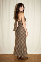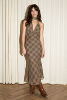 Cowl Neck Plaid Maxi Dress