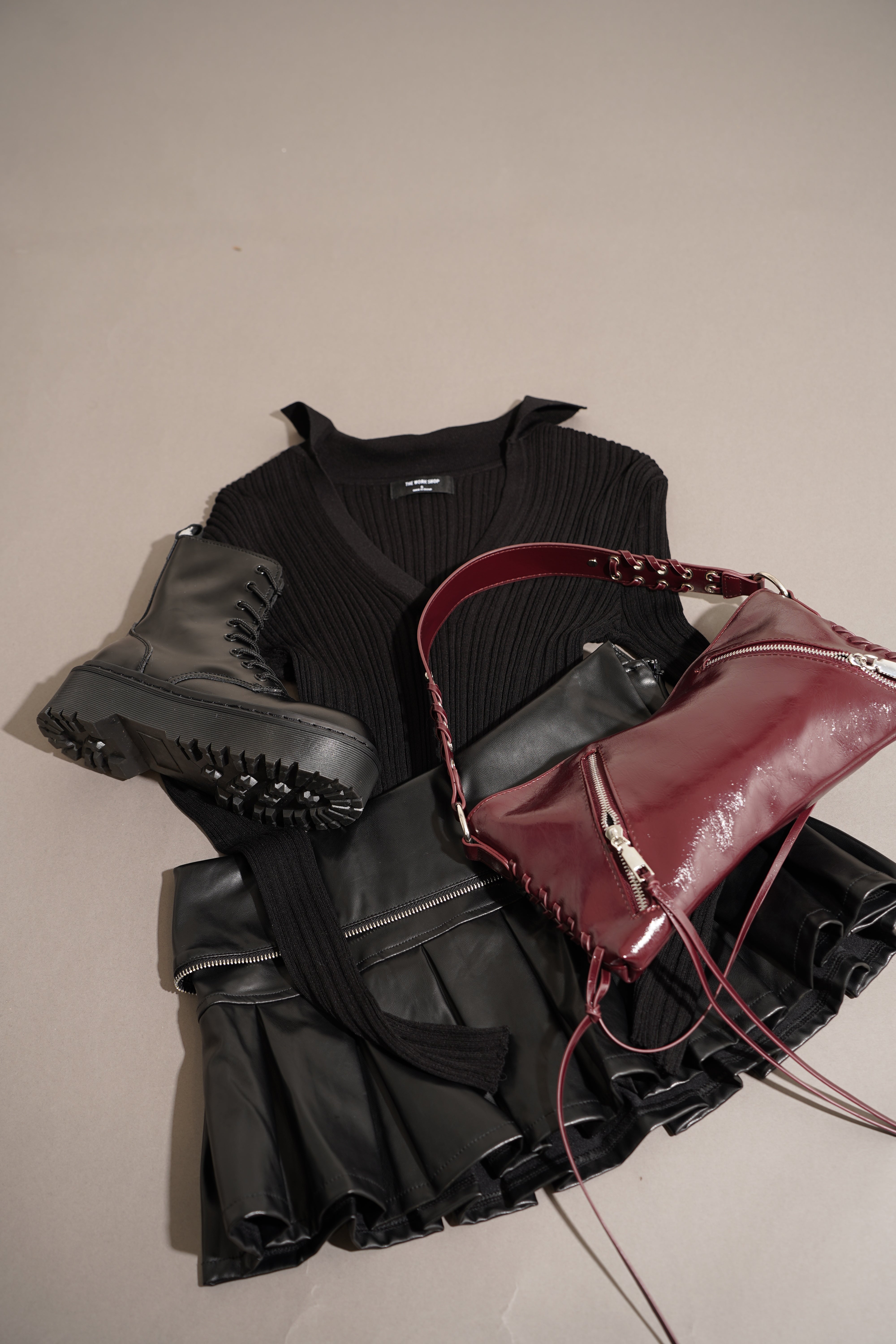 • Mini skort confeccionada en piel sintética con un diseño moderno y atrevido. Presenta un detalle de solapa asimétrica con cierre metálico, pliegues decorativos y pantaloncillo interior para mayor comodidad. Su estilo estructurado y ligeramente elástico la convierte en una pieza ideal para looks urbanos o de noche.