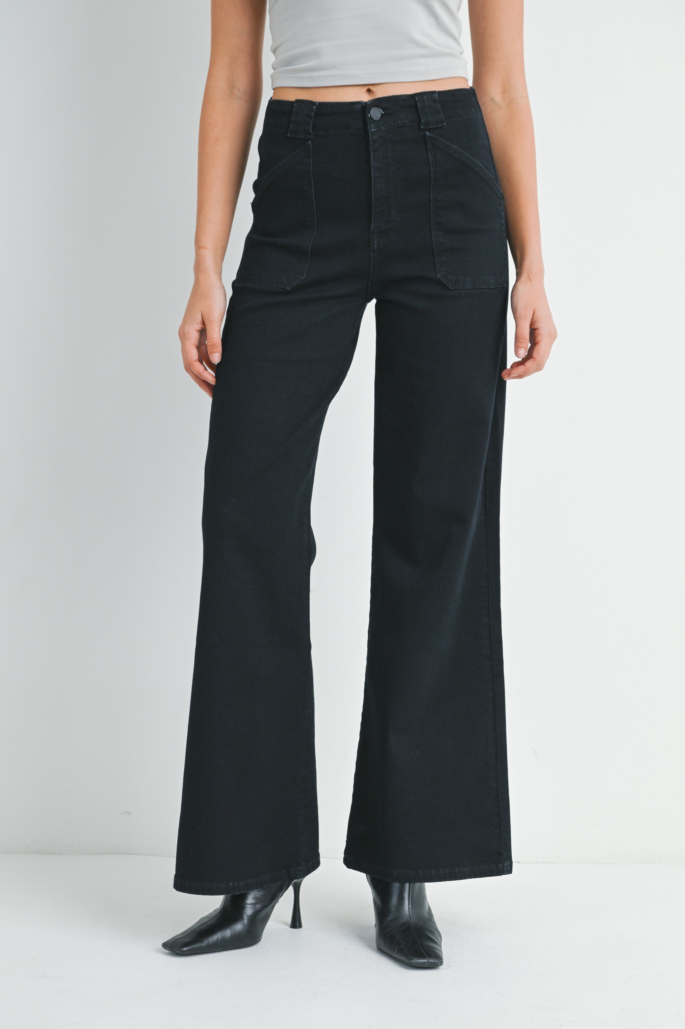 Patch Pocket Wide Leg Flare Pants
