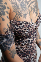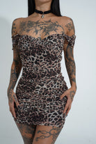 Vestido de corte ceñido con estampado de leopardo que destaca por su espalda descubierta y cierre de cremallera trasero. Su silueta favorecedora y su diseño elegante lo hacen ideal para salidas nocturnas, eventos especiales o cualquier ocasión donde quieras un look atrevido y moderno.