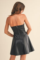 Mini vestido de tubo con acabado efecto cuero. Presenta un diseño ajustado en la parte superior y falda con ligero vuelo que resalta la figura. Su estilo moderno y atrevido lo convierte en una pieza ideal para salidas nocturnas o eventos especiales.