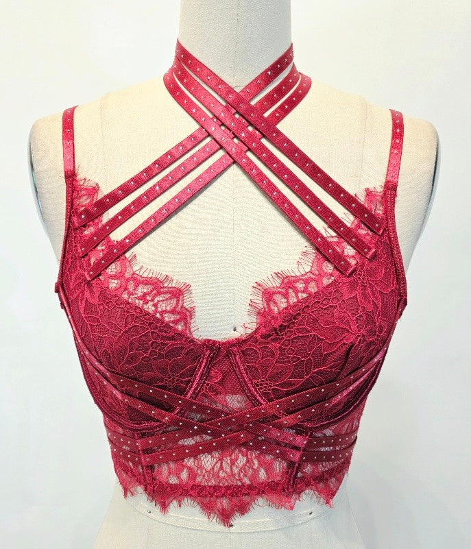 Lace Criss Cross Halter Crop Top