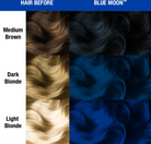 Tinte semipermanente Blue Moon es un tinte para el cabello azul verdadero, brillante, neón y de tono frío. Su fórmula vegana y libre de crueldad ofrece un color intenso, luminoso y sin dañar el cabello. Este Azul eléctrico brilla bajo luz UV y aporta un acabado audaz, ideal para quienes aman destacar y romper las reglas del estilo.